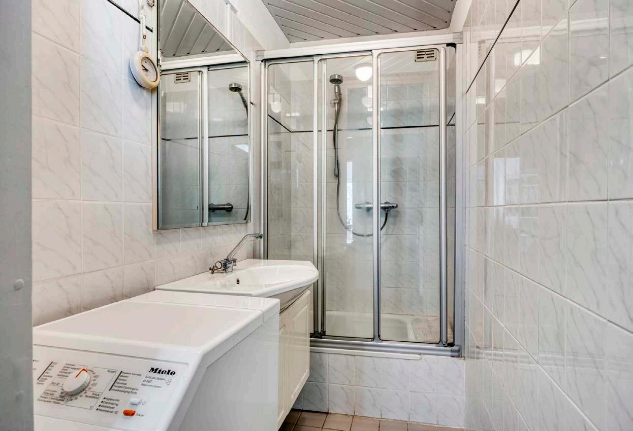 De badkamer beschikt over een douche, wastafel en een wasmachine aansluiting.