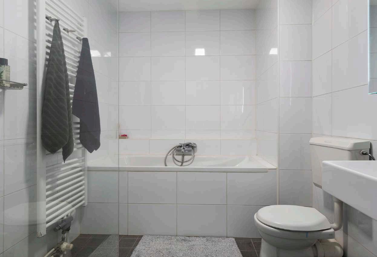 De bovenste verdieping is de plek waar je absolute rust en privacy vindt. Hier bevinden zich nog twee ruime slaapkamers, ideaal voor bijvoorbeeld een kinderkamer, logeerkamer of een luxe thuiskantoor. De comfortabele badkamer – ruim van opzet en modern afgewerkt. Douchen onder de inloopdouche of relaxen in het ligbad? Daarnaast beschikt de badkamer over een wastafel, een tweede toilet en mooie grijze vloertegels die perfect passen bij de strakke, witte wandtegels.