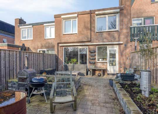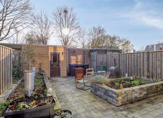 Vanuit de keuken stap je de zonnige achtertuin in, een van de grote pluspunten van deze woning. De tuin is gelegen op het zuiden, waardoor je van ’s ochtends tot ’s avonds van de zon kunt genieten. Dankzij het elektrische zonnescherm creëer je eenvoudig een schaduwrijke plek als het nodig is. De tuin zelf is onderhoudsvriendelijk ingericht met bestrating en een stukje beplanting, ideaal voor mensen die weinig tuinonderhoud willen, maar toch graag een buitenplek hebben om van te genieten.