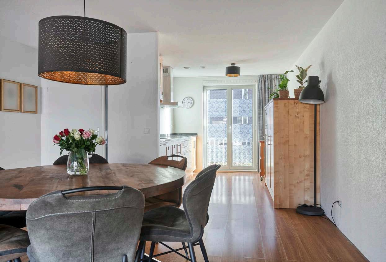 De woonkamer ademt ruimte en licht, dankzij de grote raampartijen die uitzicht bieden op de fraai aangelegde achtertuin. De afwerking is strak en modern: een lichte laminaatvloer, neutrale wanden en een gezellige sfeer gegarandeerd. Het is de perfecte plek om te genieten met vrienden en familie, bijvoorbeeld met een gezellig game- of filmavondje, of gewoon een rustige avond samen op de bank.