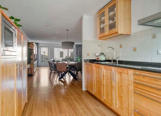 De open keuken bevindt zich aan de voorzijde van de woning en kan met recht een eyecatcher worden genoemd. De keuken is al goed uitgerust met een koel-/vriescombinatie, combimagnetron, 4-pits keramische kookplaat en een vaatwasser, maar er is ook voldoende ruimte om deze desgewenst te moderniseren of uit te breiden met jouw droomopstelling. Tijdens het koken kun je gezellig contact houden met je gasten in de woonkamer of zelfs een mooie blik werpen naar buiten.