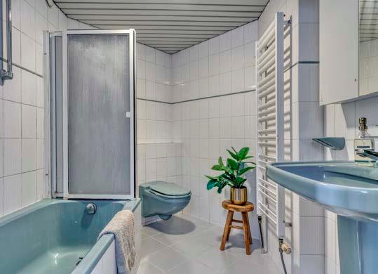 De badkamer is eenvoudig, maar volledig functioneel met een ligbad/douchecombinatie, tweede toilet en wastafel. Ideaal om lekker in te ontspannen of naar je eigen smaak te moderniseren.