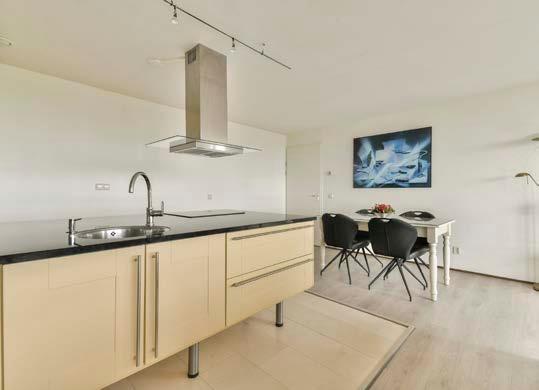 De open keuken vormt een stijlvolle aanvulling op de woonkamer. Voorzien van moderne inbouwapparatuur en uitgerust met voldoende kastruimte, is de keuken een prettige plek voor het bereiden van zowel snelle maaltijden als uitgebreide diners. Met alles binnen handbereik, wordt koken een feestje! Direct aangrenzend vind je voldoende plek voor een gezellige eethoek waar je samenkomt met je gasten