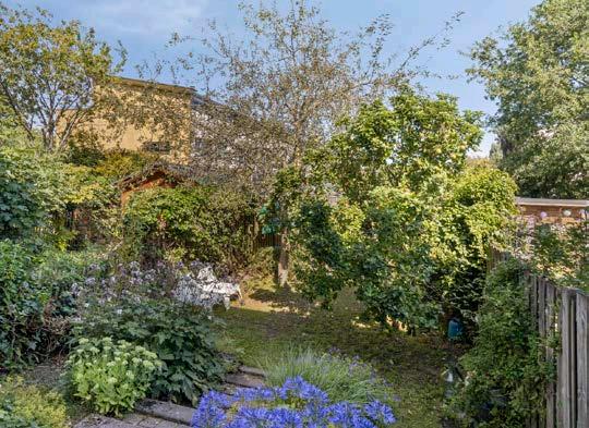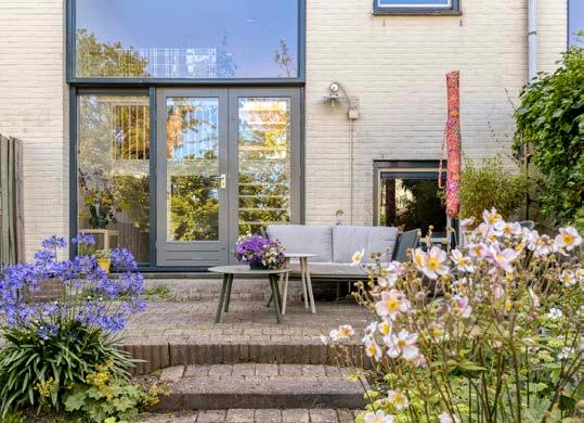 De tuin is een fijne mix van groen en bestrating; een plek waar je op zomerse dagen in alle rust geniet. Of je nu kiest voor een gezellige lunch aan de tuintafel of neerploft op de loungeset met een drankje, hier voelt elke dag een beetje als vakantie. De praktische houten berging biedt opbergruimte voor fietsen, speelgoed of tuingereedschap.