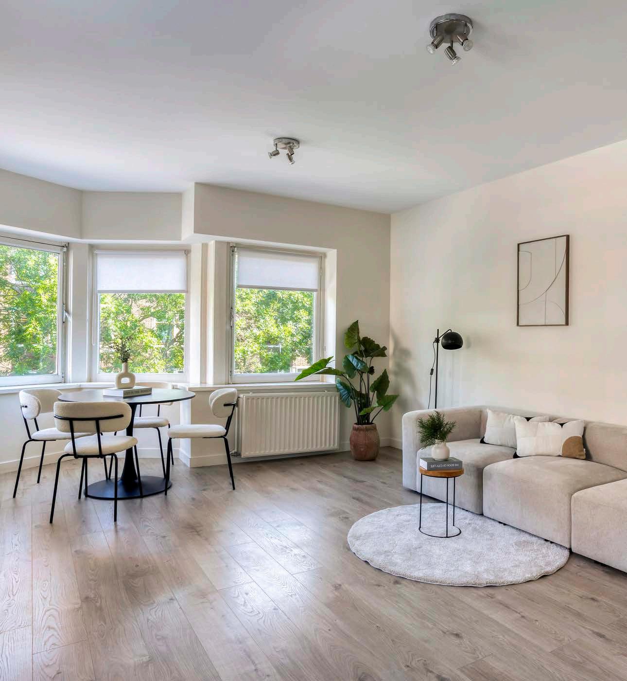 Met een woonoppervlak van 60 m² voelt dit appartement ruim en toch knus aan. De woonkamer is licht en sfeervol, en zodra je de erker ziet, ben je verkocht. Begin je dag met een kop koffie terwijl je uitkijkt over de altijd levendige Admiralengracht, of sluit je avond stijlvol af met een goed glas wijn.