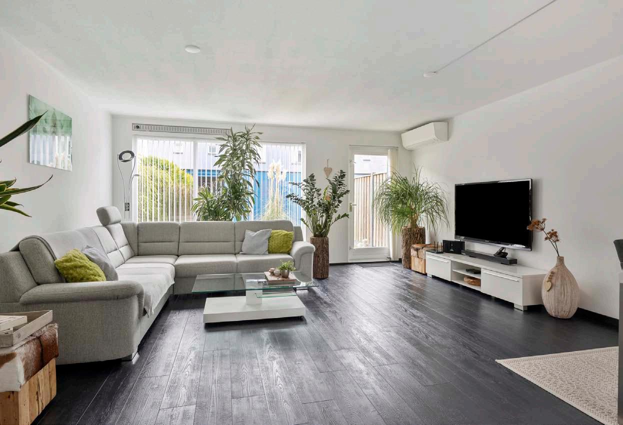 Bij binnenkomst valt direct de stijlvolle, lichte afwerking van deze woning op. De hal, compleet met meterkast, trapopgang en toilet, vormt de perfecte binnenkomer. Vanuit hier stap je door naar de tuingerichte woonkamer, waar het daglicht naar binnen stroomt via grote raampartijen. Zie je jezelf hier al zitten, met een kop koffie op de bank terwijl je geniet van het uitzicht op je zonnige tuin? De moderne afwerking maakt de ruimte helemaal af: een frisse look waar je zó je meubels neerzet. De airco zorgt voor een aangenaam binnenklimaat, óók op warme dagen.