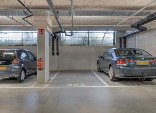 Half verdiepte stallingsgarage met privé parkeerplaats alsook de gezamenlijke fietsenstalling.