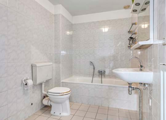 De badkamer is netjes en volledig betegeld met een ruime douche, ligbad, tweede toilet en wastafel. Dat is pas luxe!