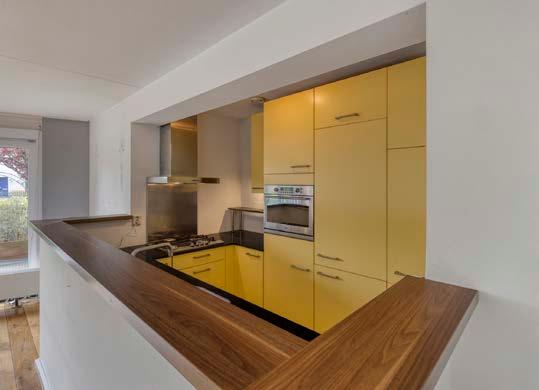 De keuken is ruim en praktisch ingericht, met voldoende mogelijkheden om deze naar eigen smaak te moderniseren.