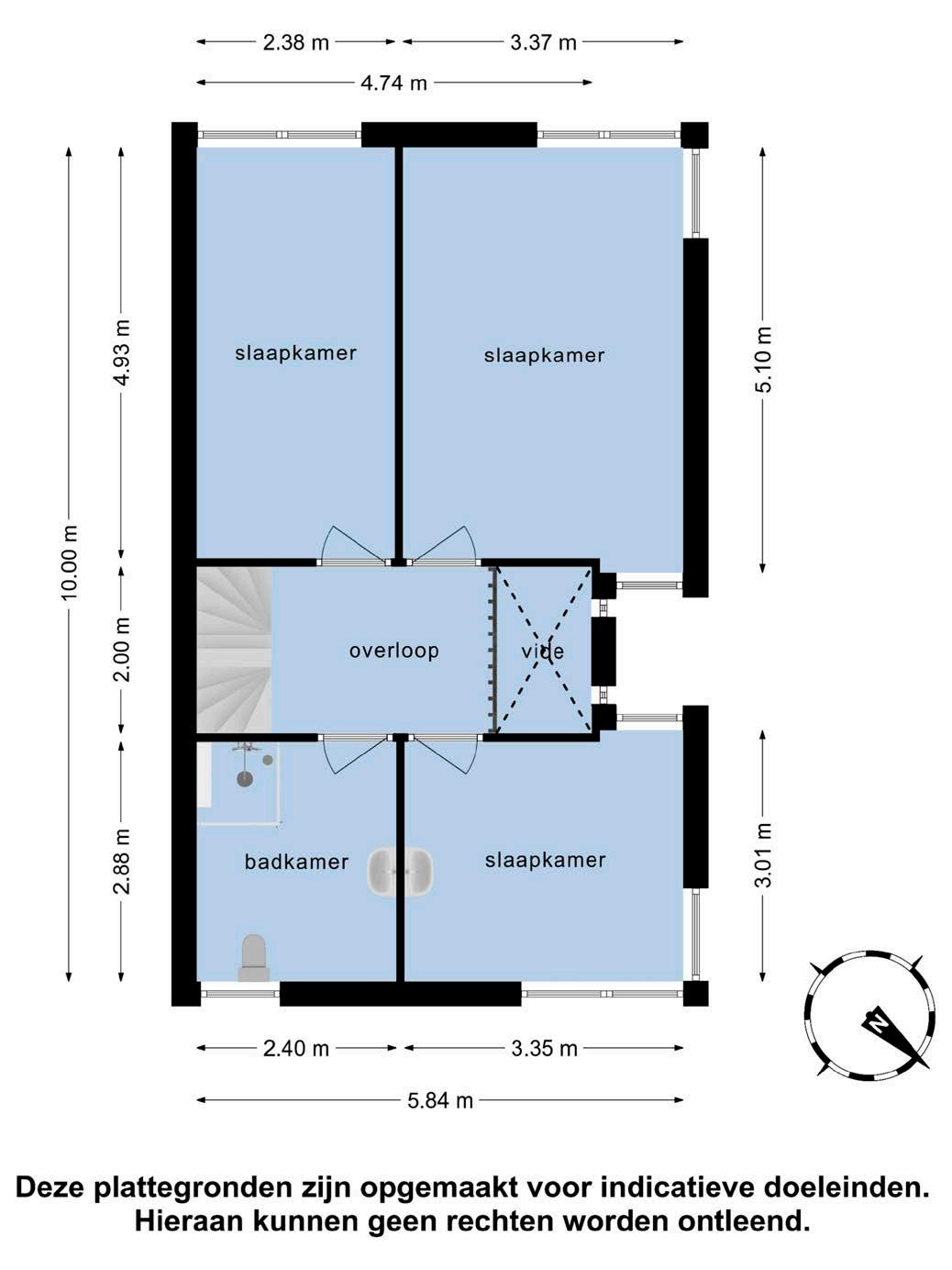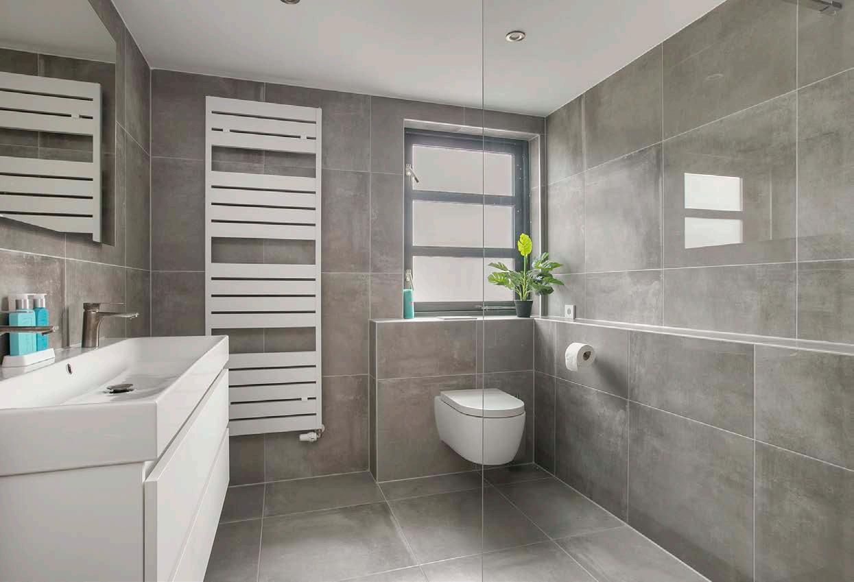 De overloop op de eerste verdieping staat dankzij de vide in leuk contact met de begane grond. Vanuit hier bereik je de badkamer, drie slaapkamers en de trap naar de tweede verdieping. De badkamer is recentelijk volledig verbouwd waarbij er is gekozen voor grote grijze vloer- en wandtegels. Het geheel is keurig afgewerkt en ingericht met een inloopdouche, dubbele wastafel met meubel, een toilet en een designradiator.
