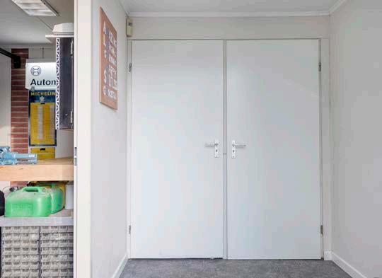 voor fietsen met opbergruimte voor gereedschap of voorraad. Deze garage is geïsoleerd en voorzien van een aansluiting voor vloerverwarming.
