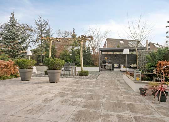 De tuin biedt plaats aan een overkapping met een naar wens open of dicht dak, een open haard, vijver en sfeervolle tuinverlichting. Daarnaast is een zitkuil gecreëerd, waarin eventueel een zwembad geïnstalleerd kan worden. Dankzij de oostelijke ligging en het ruime terras ontvangt de tuin de hele dag zon.