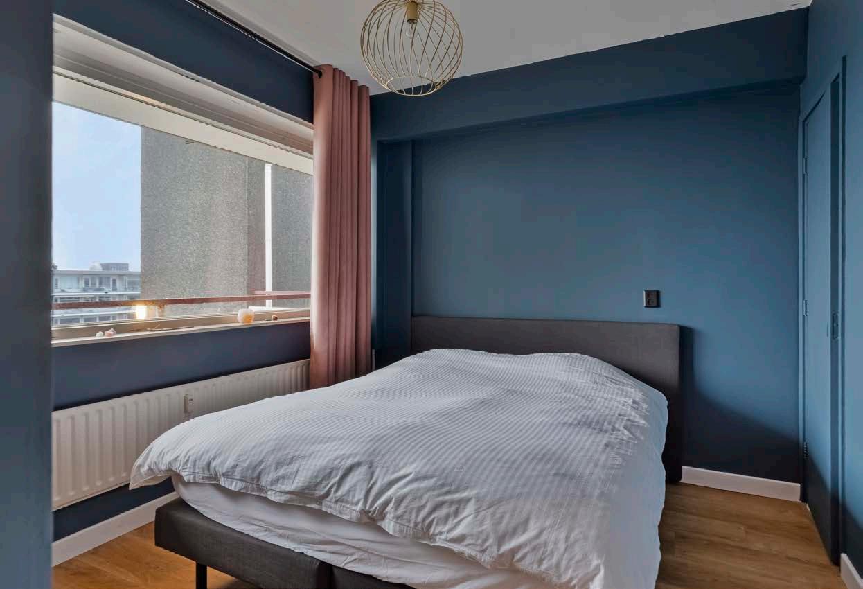 Aan de achterkant van het appartement bevindt zich de ruime woonkamer. Door de grote ramen en de westelijke ligging is deze ruimte heerlijk licht.
