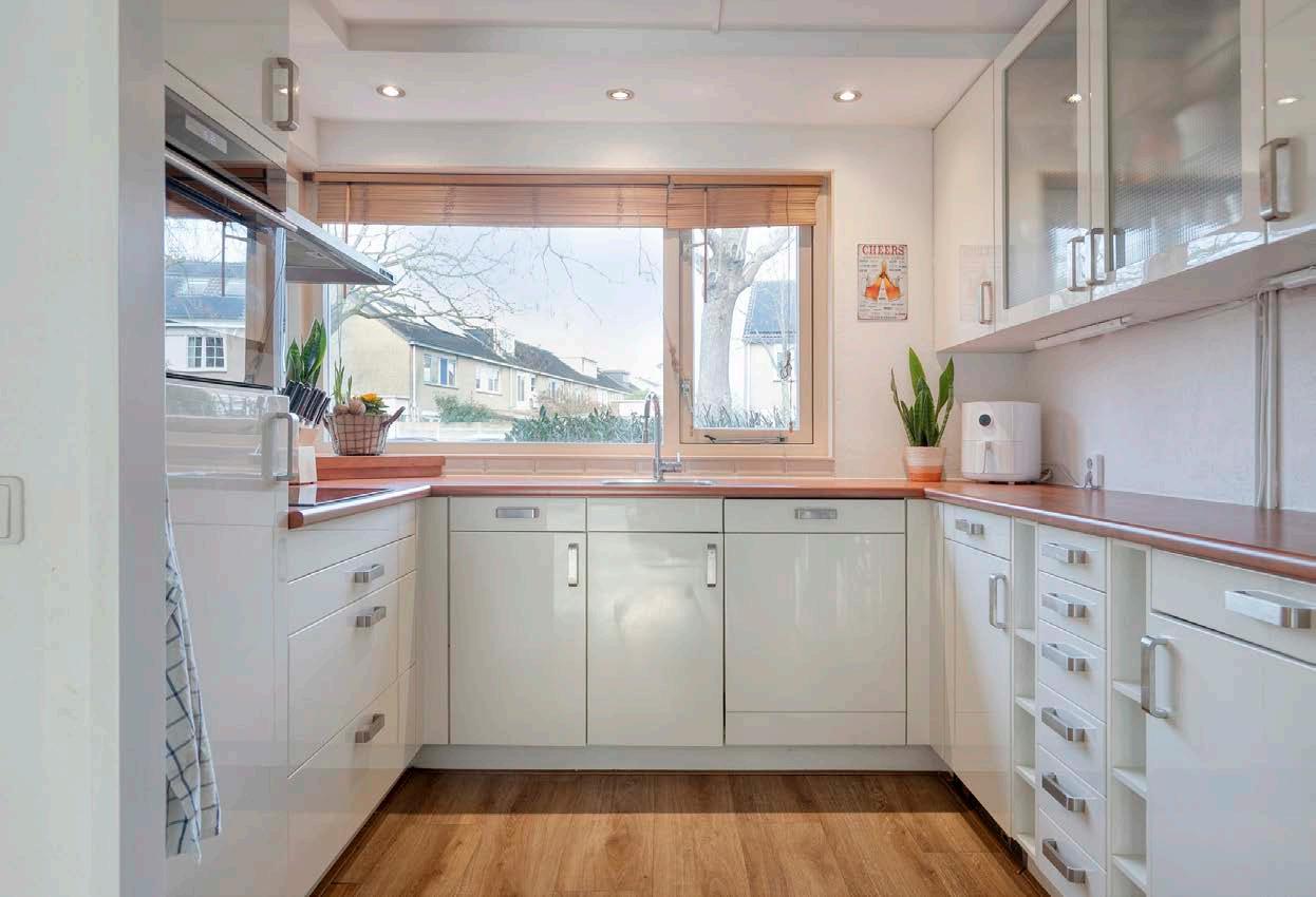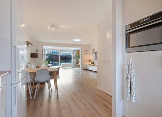 De keuken bevindt zich aan de voorzijde van de woning en is uitgerust met alle benodigde inbouwapparatuur. Koken wordt hier een feestje dankzij de inductiekookplaat, vaatwasser, combimagnetron en een ruime koelkast. Met een smaakvol en tijdloos design hoef je alleen je eigen kookkunsten mee te brengen!