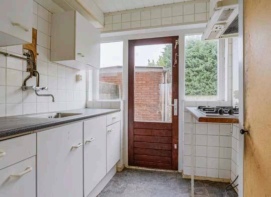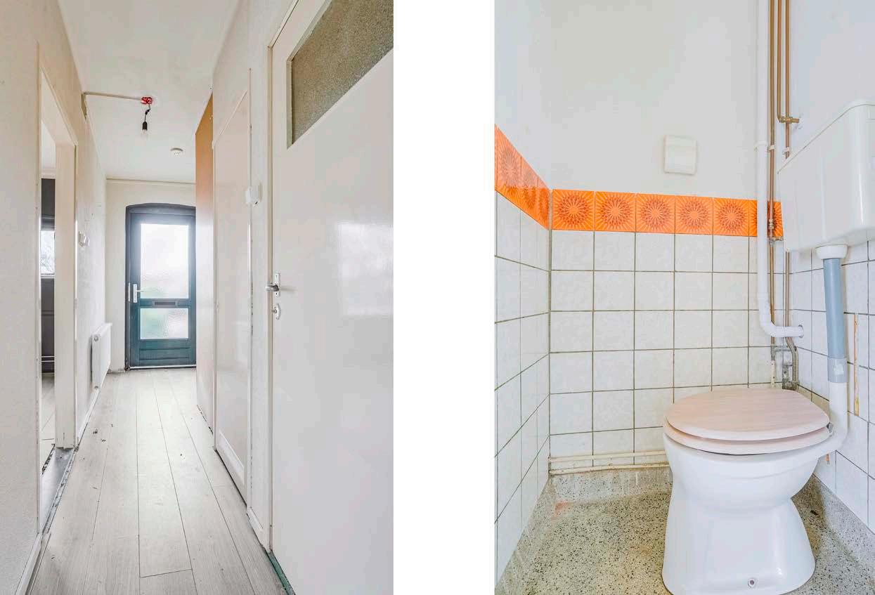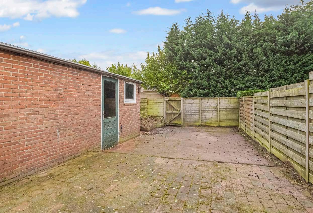 De keuken verleent toegang tot de achtertuin op het Zuidoosten. Ook hier is liefde en aandacht vereist, maar is qua ligging en afmeting erg prettig. Deze buitenruimte zal straks een van de favoriete plekjes worden waar je in de ochtend en middag lekker in de zon kunt vertoeven. Een comfortabele tuin- of loungeset met een goede kop koffie, zie jij jezelf hier al zitten?