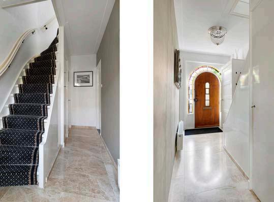 Via de entree/vestibule met prachtige houten voordeur met glas in lood zijramen, komt u in de stijlvolle hal met meterkast, trapopgang naar de verdieping en een kelderkast en toilet met fontein. In de hal ligt een authentieke marmeren vloer.