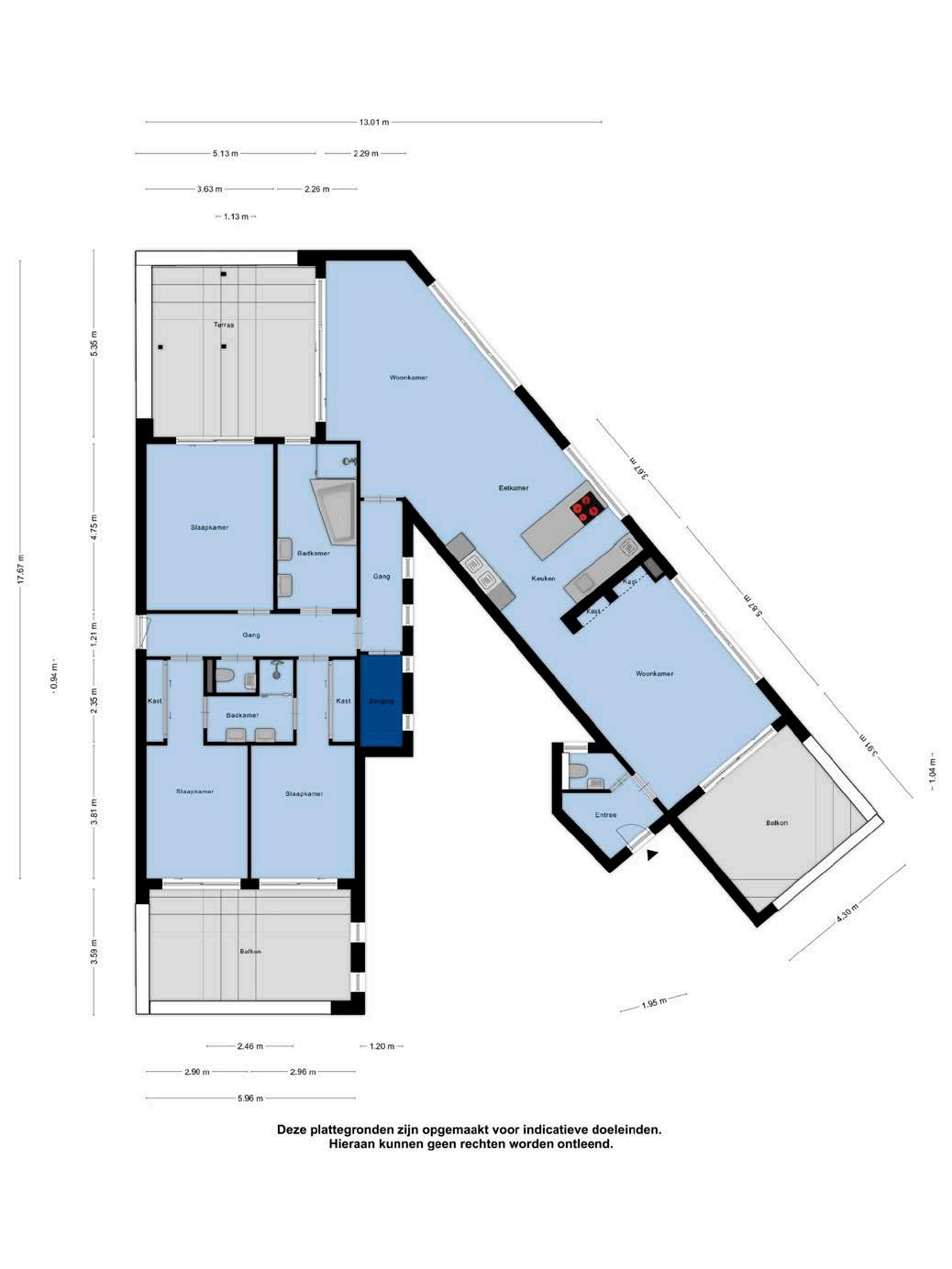 De indeling van het appartement staat verschillende inrichtingen en gebruiksmogelijkheden toe.