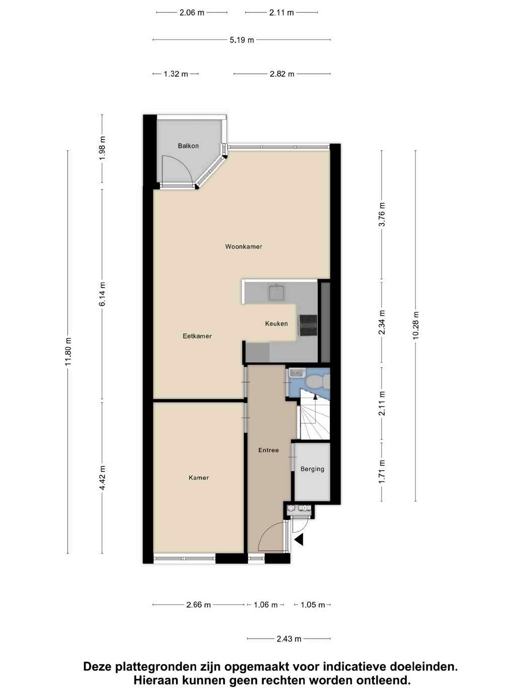 Vanaf het moment dat je de voordeur opent, merk je dat dit appartement zorgt voor een fijn gevoel van thuiskomen. Je komt binnen via een eenvoudige entree die leidt naar een ruime hal. Ook is er een klein toilet aanwezig voor je gasten en een bergkast. Tevens heb je toegang tot een slaapkamer. Vanuit de hal kom je via een vaste trap op de hogere verdiepingen.