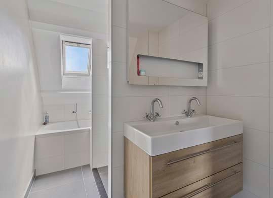 Op de eerste verdieping stap je op een overloop. Hierin vind je een nette badkamer. De badkamer heeft een toilet, dubbele wastafel en een douche. Daarnaast is er een slaapkamer met een eigen balkon, waar je de zon in de ochtend kunt opvangen. Op dezelfde verdieping vind je nog een slaapkamer. Deze ruimte kun je ook gebruiken als werkplek, sportruimte of om gewoon te ontspannen.