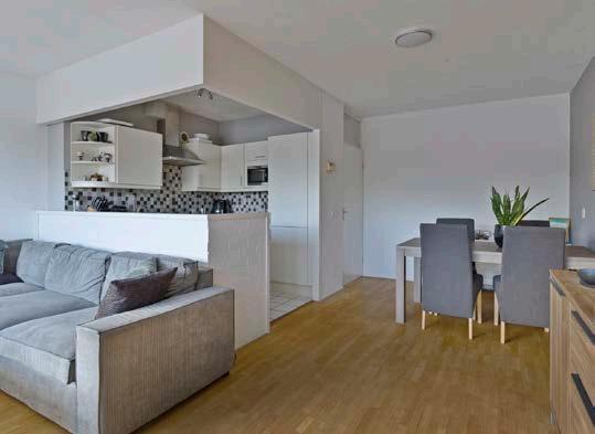 De woonkamer is licht en ruim, waardoor je er gemakkelijk gezellige avonden kunt hebben met vrienden of een rustige middag voor jezelf kunt genieten. Grote ramen zorgen voor veel natuurlijk licht. Je voelt hier echt dat je in een fijne omgeving woont.