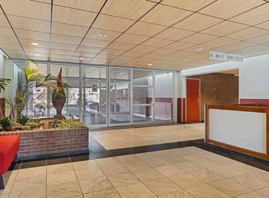 Het gebouw zelf is voorzien van een centrale hal waarin het bellentableau te vinden is en de lift naar de 7e verdieping.