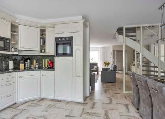 De open keuken is perfect voor wie van koken en samenzijn houdt – dankzij de open verbinding mis je niets van de gezelligheid terwijl je de pasta staat te roeren.