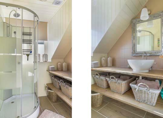De badkamer, gesitueerd op de eerste verdieping, is geheel betegeld en deze heeft een verzorgde uitstraling. In de badkamer ben je voorzien van een wastafelmeubel en een douchecabine.