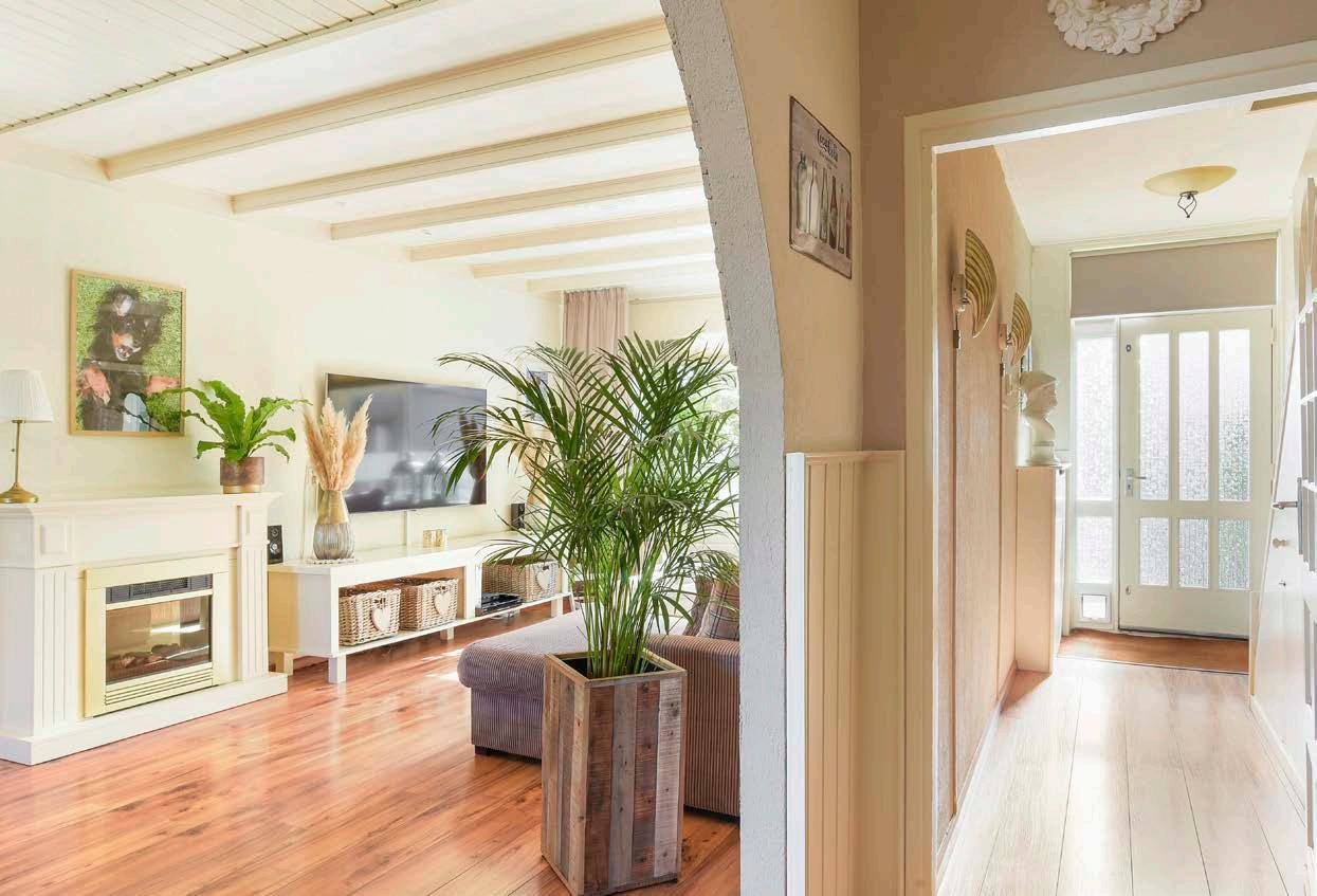 Een toog geeft je vanuit de keuken toegang tot de doorzonwoonkamer. Het geheel is netjes afgewerkt en dankzij de grote ramen aan zowel de voor- als de achterzijde valt er prettig veel daglicht binnen.
