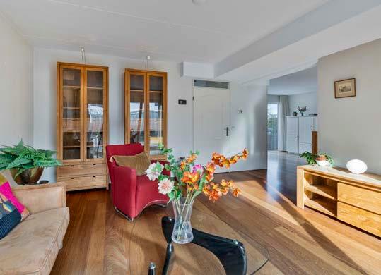 De woonkamer is licht, ruim, voorzien van een prachtige hardhouten vloer en gaat naadloos over in de tuin dankzij de schuifpui.