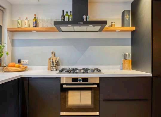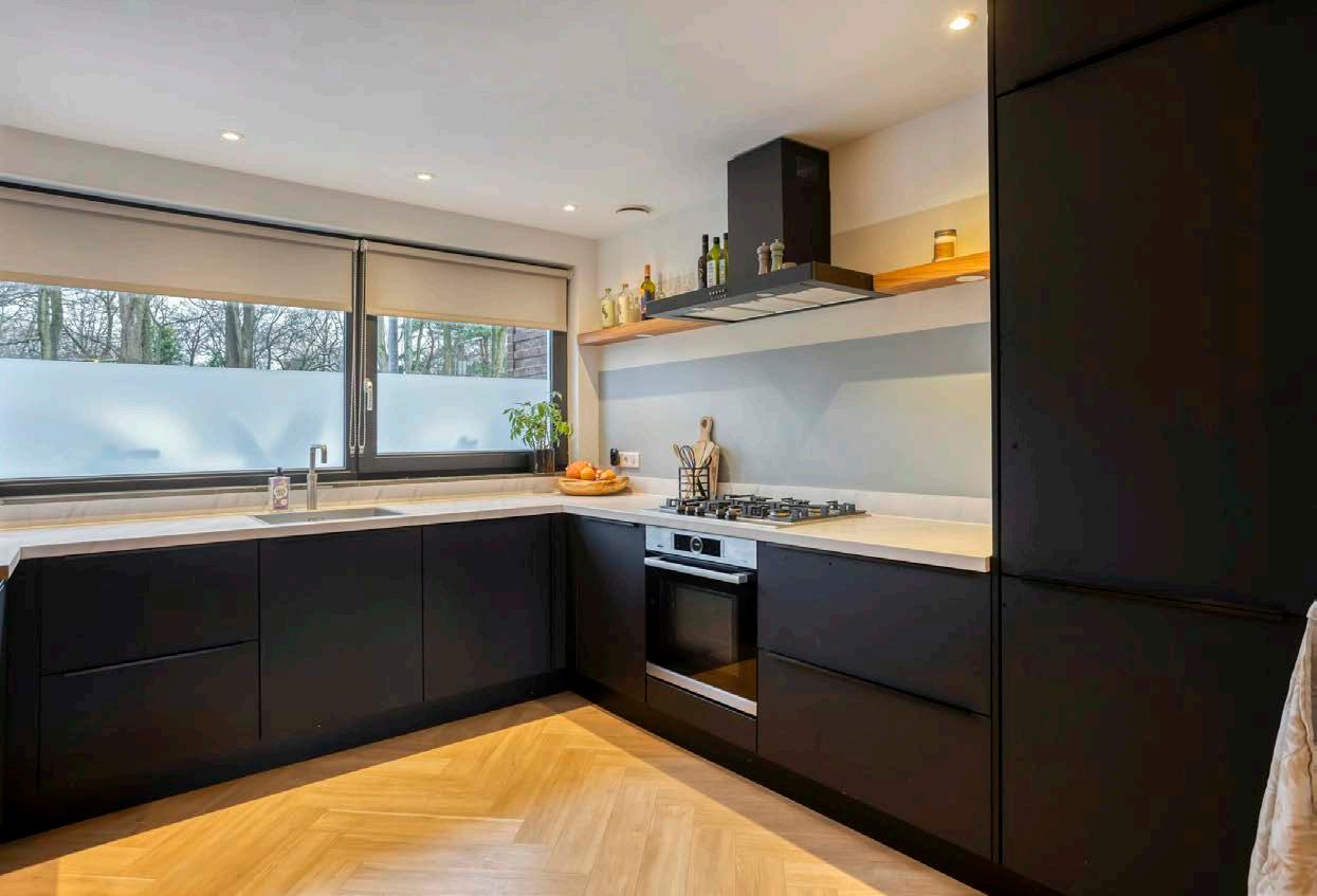 De keuken in deze woning is een plek waar functionaliteit en luxe samenkomen. Voorzien van alle moderne gemakken, zoals een vaatwasser, koelkast, vriezer, oven en gasfornuis, is dit een keuken waar je zonder problemen elk gerecht op tafel zet. Daarnaast biedt het slimme ontwerp voldoende werk- en opbergruimte.