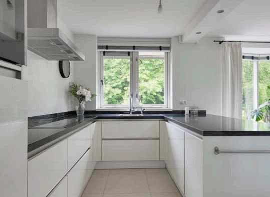 Liever in de keuken aan de slag? De tuingerichte keuken is uitgerust met alles wat je nodig hebt, waaronder een inductiekookplaat, koelkast, oven, vaatwasser en zelfs een kokendwaterkraan. Aansluitend vind je de praktische bijkeuken met witgoedaansluitingen. Dit soort details maken het dagelijkse leven hier extra comfortabel.