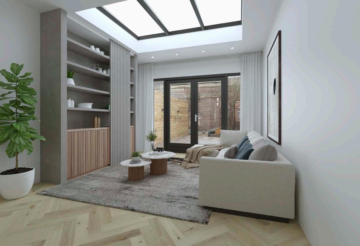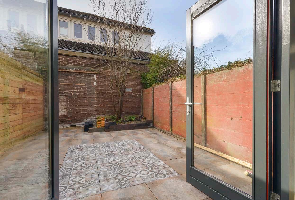 Aan de achterzijde is de woning een flink stuk uitgebouwd en voorzien van meerdere licht vensters waardoor er een zeer prettige lichtinval is ontstaan. De openslaande deuren aan de achterzijde geven toegang tot de achtertuin. Zie jij je hier al zitten met een wijntje?