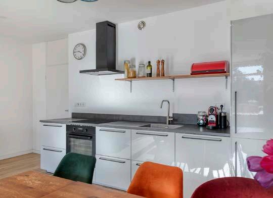 In de ruime woonkamer vind je de moderne open keuken voorzien van inbouwapparatuur (oven, vaatwasser, ruime koelkast en vriezer).