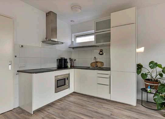 De woonkamer van 20 vierkante meter biedt genoeg ruimte voor gezellige avonden met vrienden of rustige momenten voor jezelf. De open keuken is modern en praktisch ingericht, perfect voor het bereiden van heerlijke maaltijden.