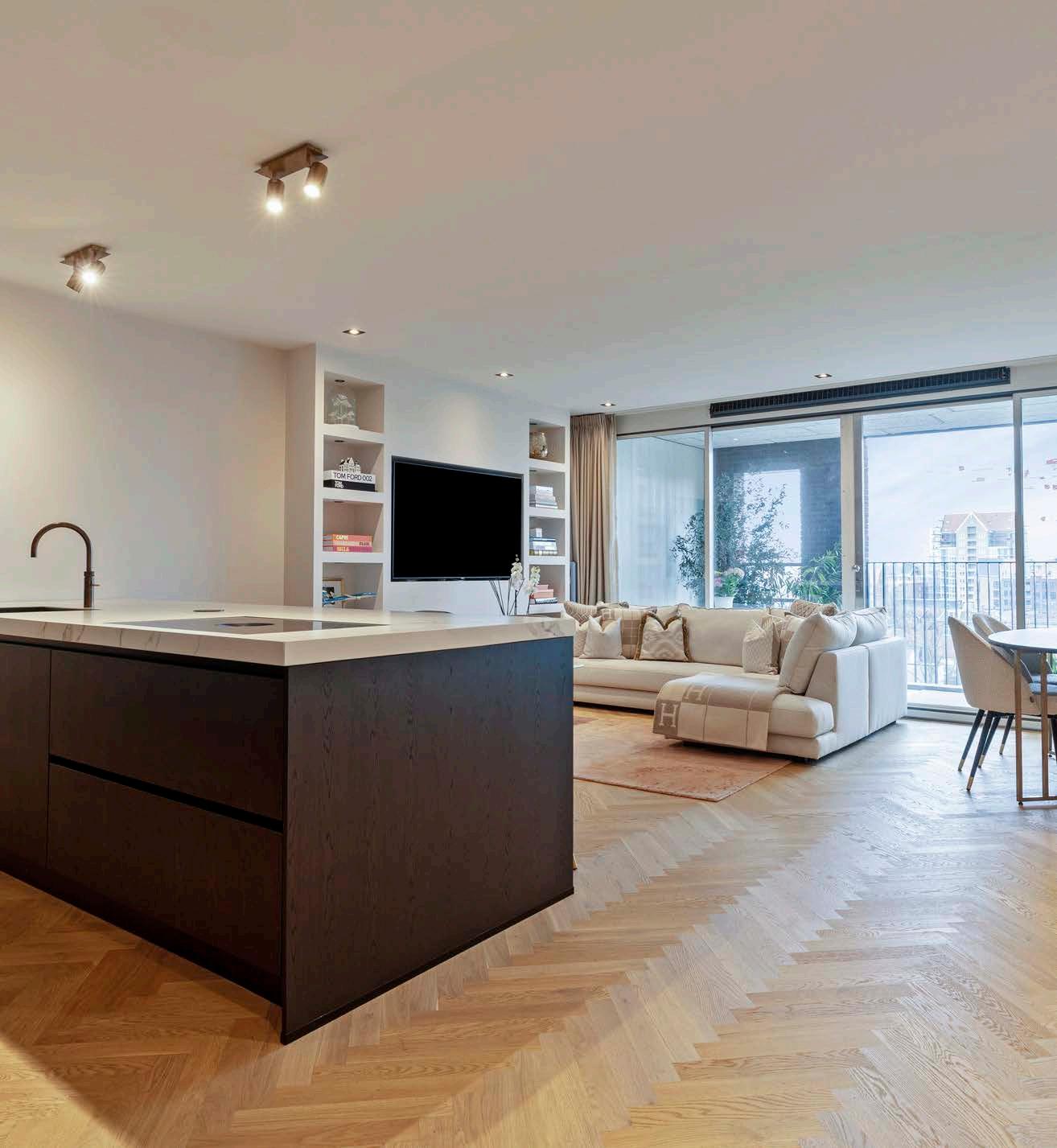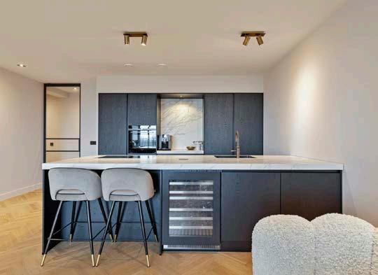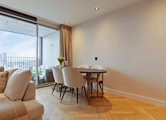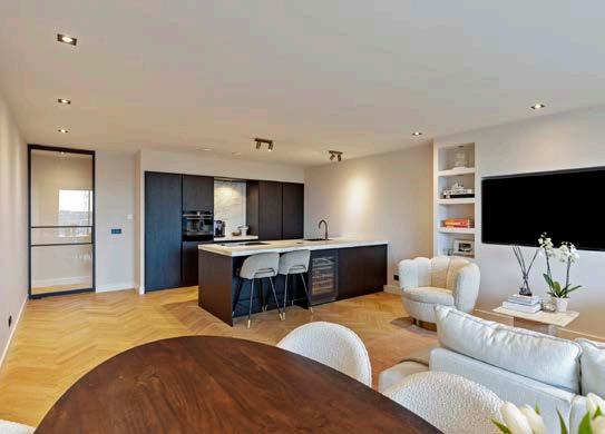 Bij binnenkomst wordt u direct verwelkomd door een lichte en ruime hal die toegang biedt tot alle vertrekken van de woning. De woonkamer is een waar paradijs voor de levensgenieter, met gevelbrede ramen en een schuifpui die overvloedig daglicht binnenlaten en een prachtig uitzicht bieden. De hoogwaardige afwerking van het appartement en straalt luxe uit.