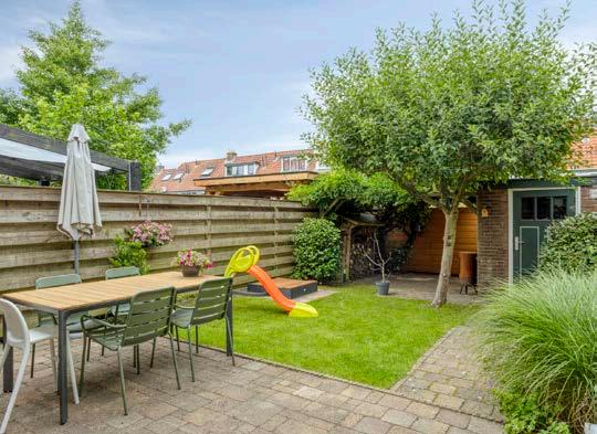 De achtertuin is met zorg aangelegd en biedt verschillende zitjes waar je de zon kunt opzoeken – of juist wat schaduw als het hoogzomer is. Hier geniet je van lange zomeravonden, barbecues met vrienden en familie, of gewoon een goed boek in alle rust.