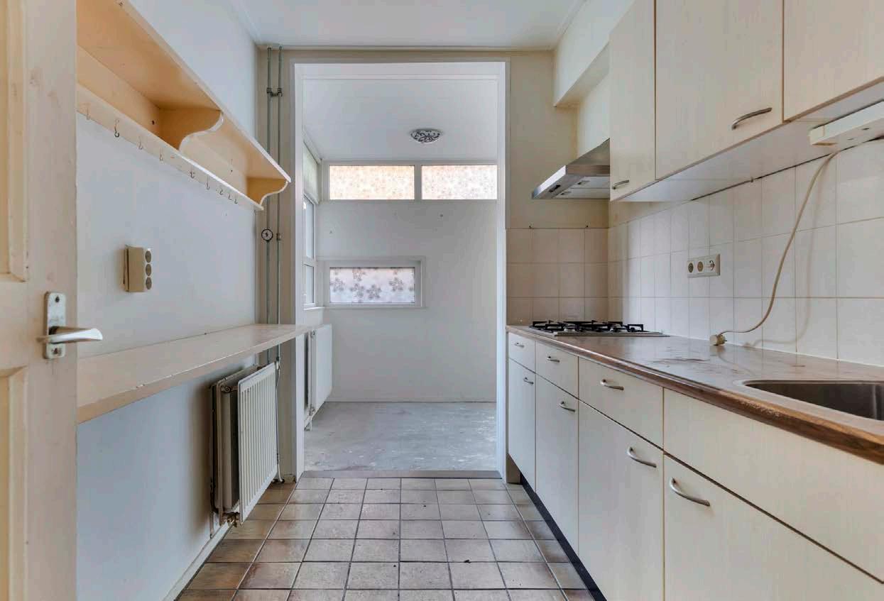 De keuken heeft een handige uitbouw en de bijkeuken biedt extra opslagruimte.