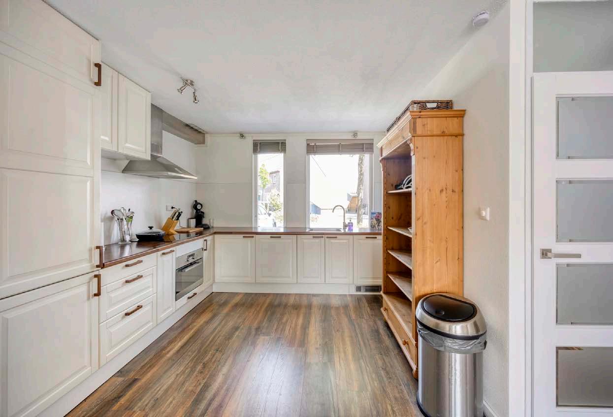 Met de zithoek aan de tuinzijde en een eigentijdse open keuken aan de voorzijde is het een prettige plek om te koken, ontspannen of samen te komen. De nette keuken in een praktische L-opstelling is van alle gemakken voorzien, zoals een inductiekookplaat, combi-oven en vaatwasser. Er is eveneens ruimte zat voor een gezellige eethoek en contact met de keuken. Zo wordt koken een waar genot!