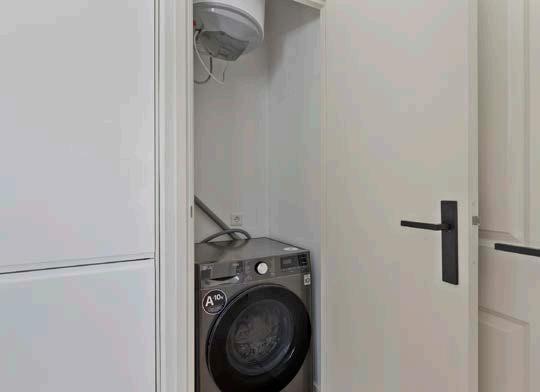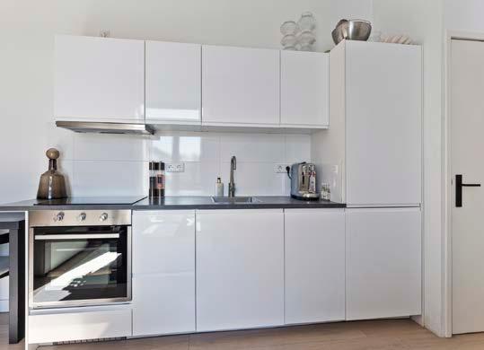 Koken wordt een feest in deze nette keuken. Het moderne keukenblok is voorzien van inductiekookplaat, afzuigkap, vaatwasser, oven en een ingebouwde koelkast en vriezer. En hoe heerlijk is het om ‘s ochtends aan het charmante barretje je koffie te drinken terwijl de zon binnen schijnt?
