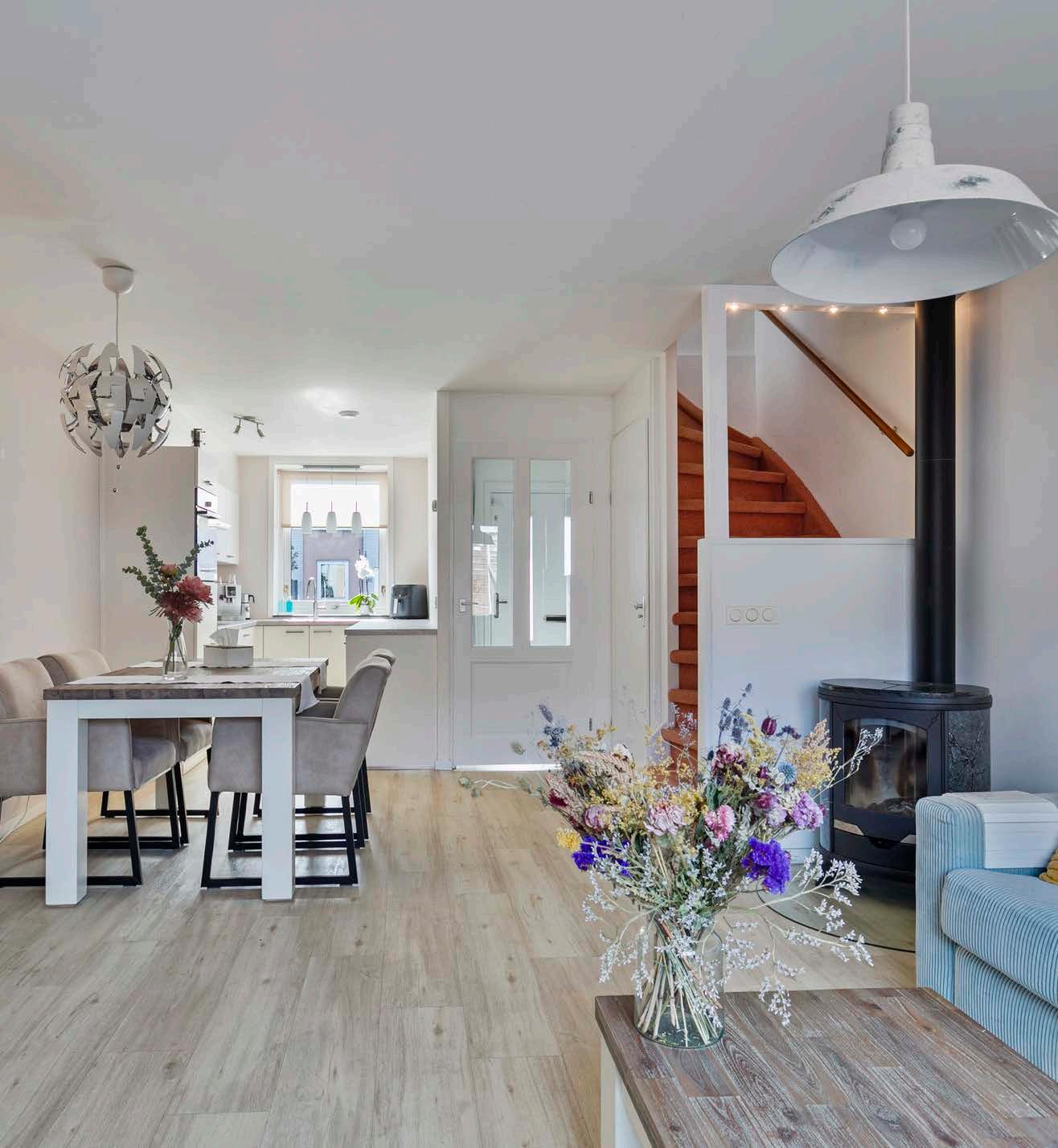 Bij binnenkomst van de woning aan de Jan Rijksenstraat verwelkomt de hal je, met een directe toegang tot de ruime woonkamer. Deze lichte woonkamer is met zorg afgewerkt en heeft neutrale kleuren die een tijdloze uitstraling geven. Bovendien is de begane grond uitgerust met vloerverwarming, wat zorgt voor extra comfort en een heerlijk aangename temperatuur, zelfs op de koudste dagen. In de wintermaanden biedt de aanwezige houtkachel niet alleen warmte, maar ook een gezellige sfeer, ideaal voor zowel rustige avonden als sociale bijeenkomsten. De hal is ingekort om de woonkamer groter en lichter te maken.