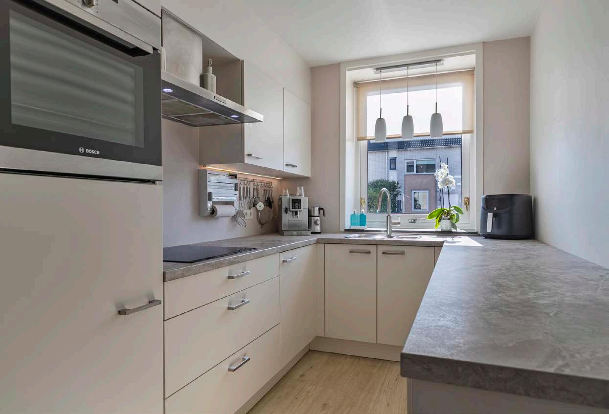 De keuken is modern ingericht en beschikt over een complete set apparatuur: een 4-pits inductiekookplaat, koelkast, vriezer, oven en vaatwasser vormen een degelijke basis voor uw kookactiviteiten. De open indeling naar het eetgedeelte zorgt ervoor dat je gemakkelijk kunt schakelen tussen koken en dineren, wat het alledaagse leven vereenvoudigt.