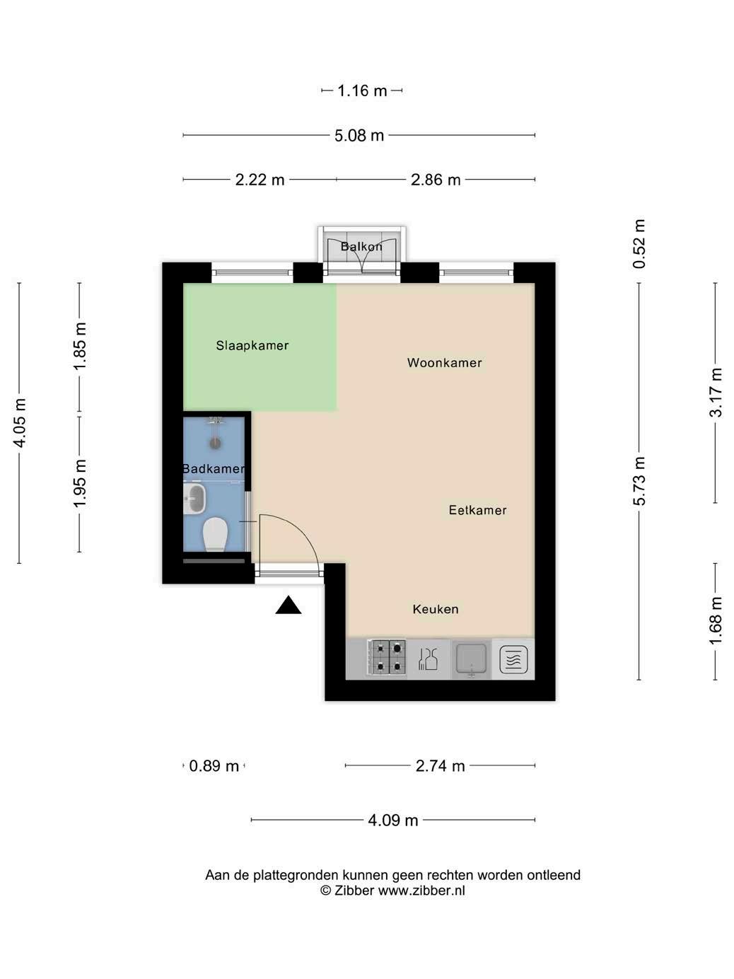 Links naast het balkon heb je een knus plekje waar je ruimte hebt voor je bed en tegenover de open keuken heb je een gezellige zithoek.