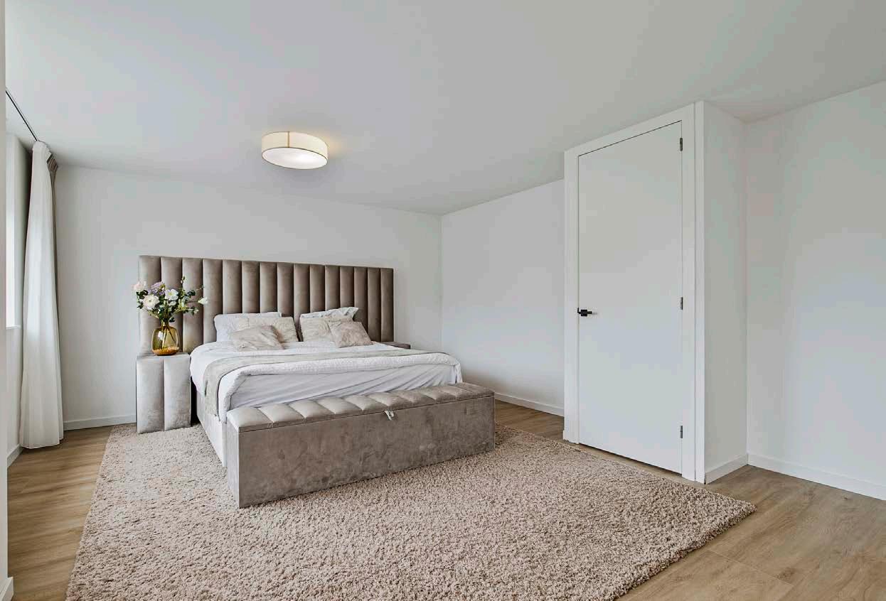 Ga je naar de eerste verdieping, dan vind je drie ruime slaapkamers die flexibiliteit bieden voor gezinnen en stellen die van hun huis een dynamische leefruimte willen maken. De hoofdslaapkamer van circa 24 vierkante meter biedt de mogelijkheid om op te splitsen. De badkamer, met zijn hoge plafond en moderne voorzieningen, is de perfecte plek voor ontspanning na een lange dag. Voor extra gemak is het toilet apart op de overloop gelegen, wat zorgt voor extra privacy tijdens drukke ochtenden.