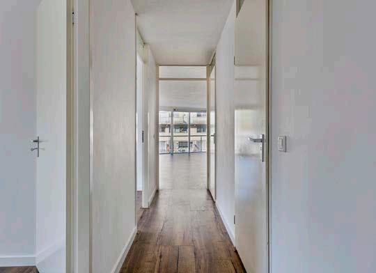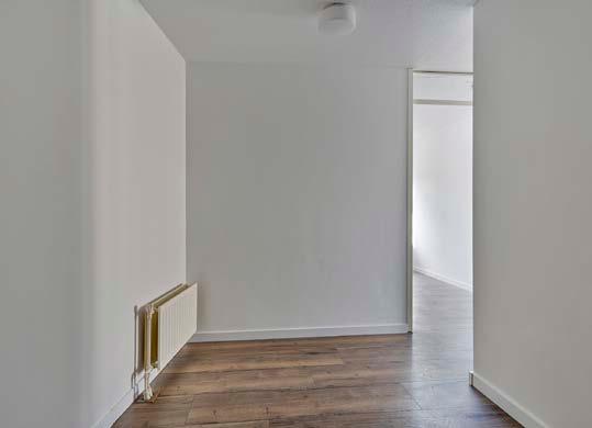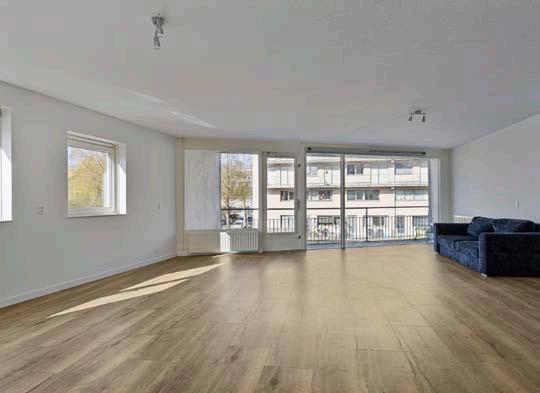 Bij binnenkomst in het appartement word je verwelkomd door een lichte woonkamer die door de hoekligging een fijne ruimte biedt.
