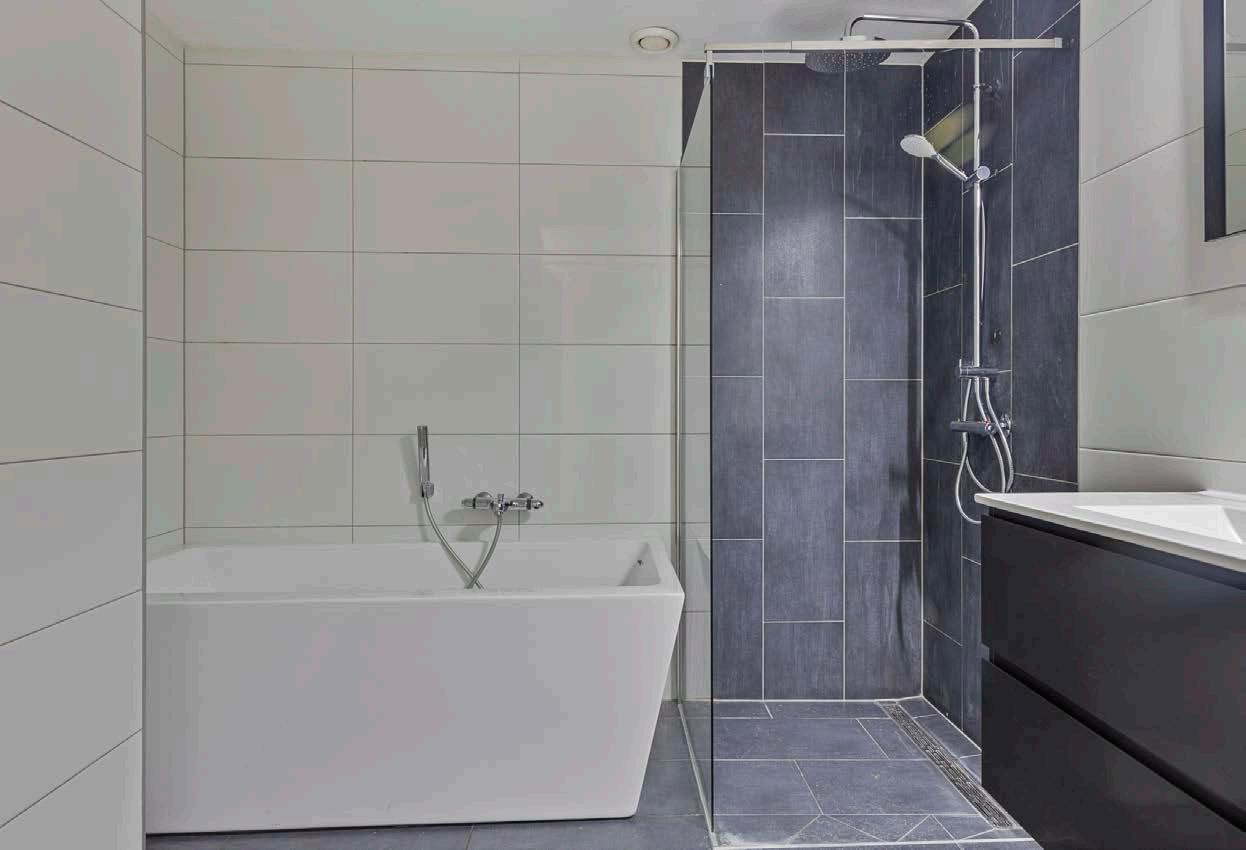 De badkamer is een waar genot met een ruime inloopdouche, ligbad en een wastafelmeubel.
