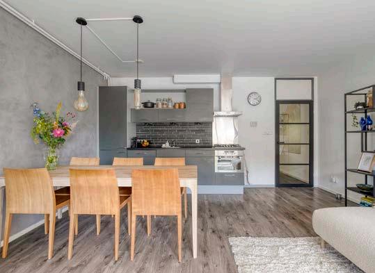 Bij binnenkomst in het appartement kom je via de gedeelde entree (voorzien van een intercomsysteem) eenvoudig met de trap of lift naar de woning. Hier tref je een lichte, ruim opgezette woonkamer waar je moeiteloos een knusse zithoek en eethoek kunt creëren.