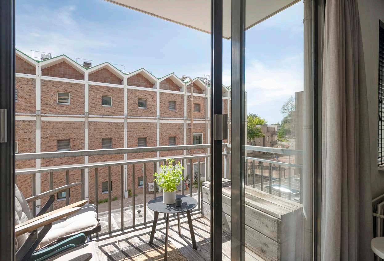 De grote schuifdeur bij de woonkamer leidt naar het zonnig gelegen balkon op het zuidwesten. Dit is dé plek waar je van de middagzon geniet met een goed boek, een kop koffie of een gezellige borrel.