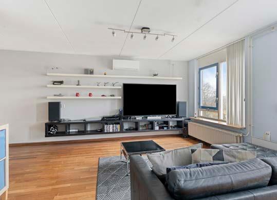 De woonkamer is praktisch ingericht en staat in open verbinding met de keuken. Vanuit de woonkamer heb je toegang tot het balkon