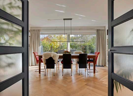 De woonkamer biedt dankzij de grote raampartijen niet alleen een heerlijk open gevoel, maar ook een prachtig uitzicht op jouw tuin gelegen op het zuiden.
