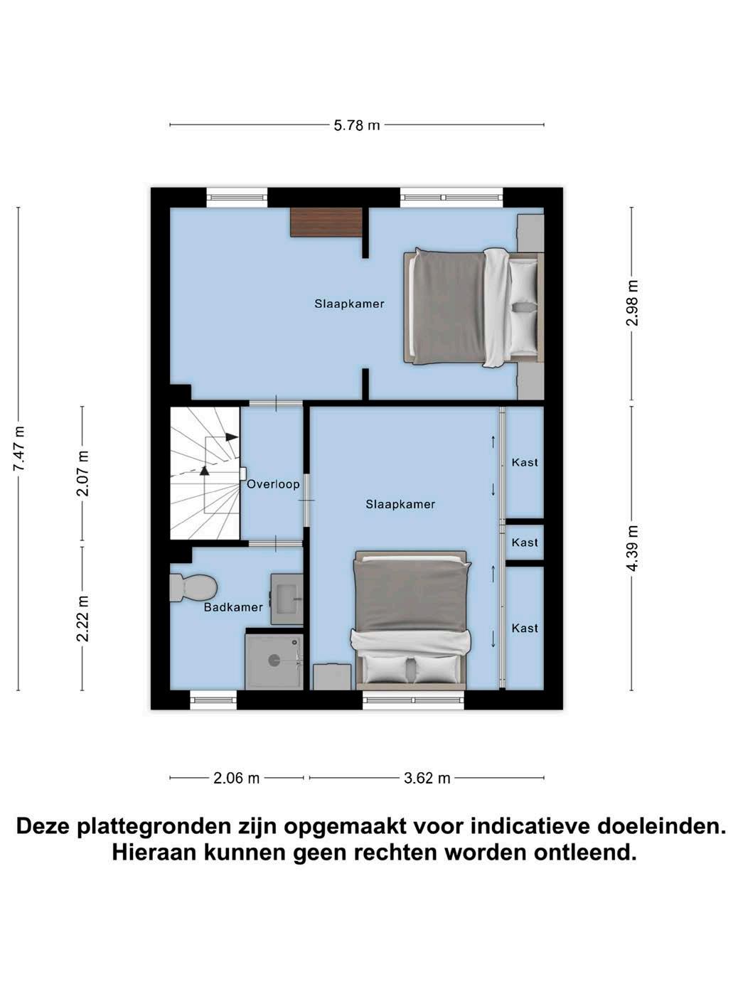Op de tussenverdieping vind je twee ruime slaapkamers met recht opgetrokken wanden, ideaal ingedeeld. De slaapkamer aan de voorzijde beschikt over een vaste kast, terwijl de slaapkamer aan de achterzijde eenvoudig gesplitst kan worden in twee aparte kamers. Op de zolderverdieping bevindt zich de derde slaapkamer, klaar voor jouw persoonlijke touch.